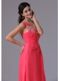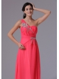 Home >  Prom Dresses >  Unique Prom Dresses > Custom Made Coral Red One Shoulder Beading and Ruch Norwich Connecticut Prom Dress