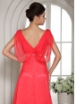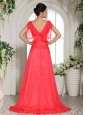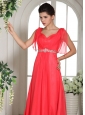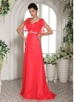Do you want to experience the feeling of being the spotlight? This coral red prom dress will make your dream come ture. It features sweetheart neckline and exquisite ruchings embellished beadings, which defines your natural waistline. The unique sleeves and the deep v-neck back add the charm. A stunning dress you can't miss.