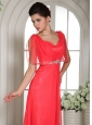 Custom Made Coral Red Square Beading 2013 Prom Dress