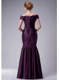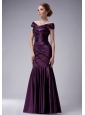 Custom Made Dark Purple Mermaid Off The Shoulder Mother Of The Bride Dress Taffeta Ruch Floor-length