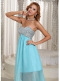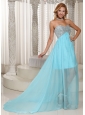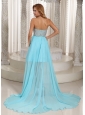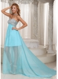 Custom Made Design Own Prom Dress With Aqua Blue Sweetheart Beaded Brush Train For Party Style