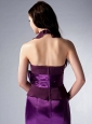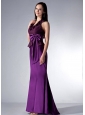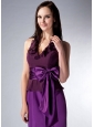 Custom Made Eggplant Purple Cloumn Halter Bridesmaid Dress Bow Brush Train Elastic Woven Satin and Chiffon