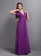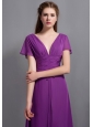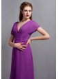 Home >  Special Occasion Dresses >  Mother of the Bride Dresses > Custom Made Eggplant Purple Column Mother Of The Brides Dress V-neck Ruch Floor-length Chiffon