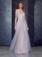 Custom Made Empire Applique Silver Modest Prom Dress in Tulle