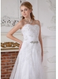 Home >  Wedding Dresses >  Lace Wedding Dresses > Custom Made Empire Sweetheart Lace Wedding Dress Cathedral Train Beading