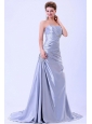 Custom Made For 2013 Prom / Evening Dress Silver A-line Ruched and Appliques With Brush Train