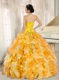 Custom Made For 2013 Yellow Puffy Quinceanera Dresses with Beaded and Ruffles