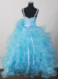 Lovely Little Girl Pageant Dress. This organza pageant dress features strap straight cut neckline with ruching and beading and a ruffled full skirt. It makes this beautiful dress perfect for your 2013 pageant.