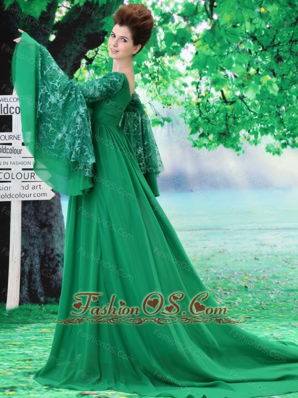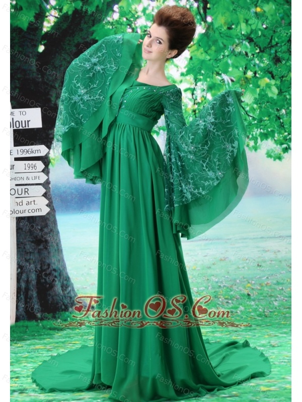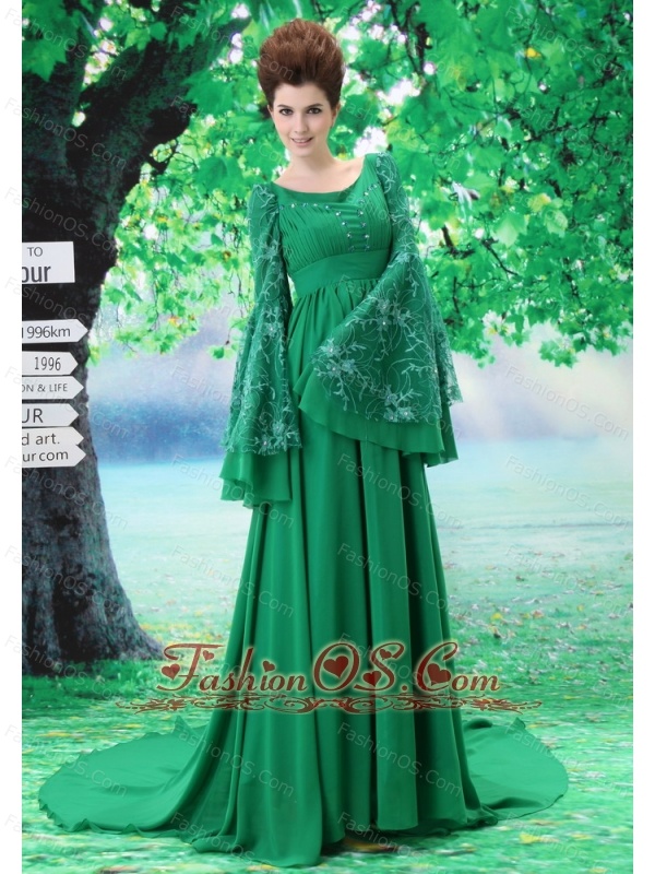 Custom Made For Mother of the Bride Dress With Scoop Long Sleeves Green