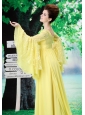 If you are interested in chinese movies, you will find with this dress you will like a fairy maiden. The fitted bodice is adorned with a scoop neckline and exquisite beadwork and also embellished with long lace sleeves which adds romantic look. Floor-length design with a brush train makes this skirt more flowy and beautiful. A zipper up back completes this fabulous dress. What are you looking for? Bring it to your home with no hesitation!