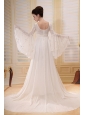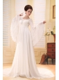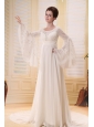 If you are interested in chinese movies, you will find with this dress you will like a fairy maiden. The fitted bodice is adorned with a scoop neckline and exquisite beadwork and also embellished with long lace sleeves which adds romantic look. Floor-length design with a brush train makes this skirt more flowy and beautiful. A zipper up back completes this fabulous dress. What are you looking for? Bring it to your home with no hesitation!