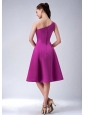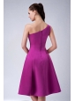 Custom Made Fuchsia A-line / Princess One Shoulder Bridesmaid Dress Satin Knee-length
