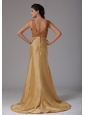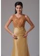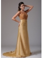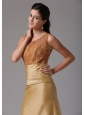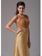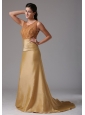 Home >  Prom Dresses >  Unique Prom Dresses > Custom Made Gold Scoop Ruch and Lace Prom Dress With Satin In Greenwich Connecticut 2013