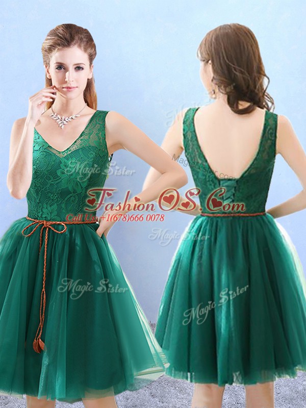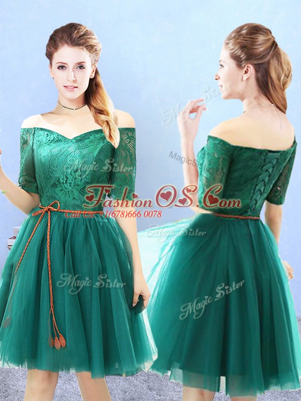 Custom Made Half Sleeves Backless Knee Length Lace Quinceanera Dama Dress
