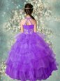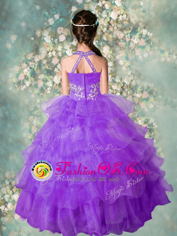 Home >  Special Occasion Dresses >  New Style Little Girl Pageant Dresses > Custom Made Halter Top Floor Length Lavender Little Girls Pageant Dress Organza Sleeveless Beading and Ruffled Layers