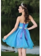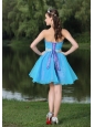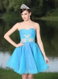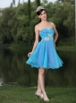 Custom Made Hand Made Beaded Aqua Blue Organza Homecoming Party Dress