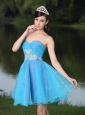 Home >  Special Occasion Dresses >  Homecoming Dresses > Custom Made Hand Made Beaded Aqua Blue Organza Homecoming Party Dress
