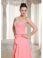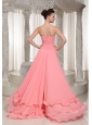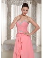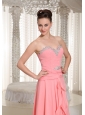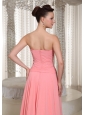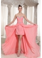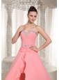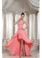 Custom Made High-low Prom Dress With Watermelon Chiffon Beaded Decorate
