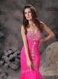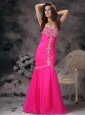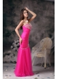 Custom Made Hot Pink Prom / Evening Dress Mermaid Sweetheart Organza Beading Floor-length