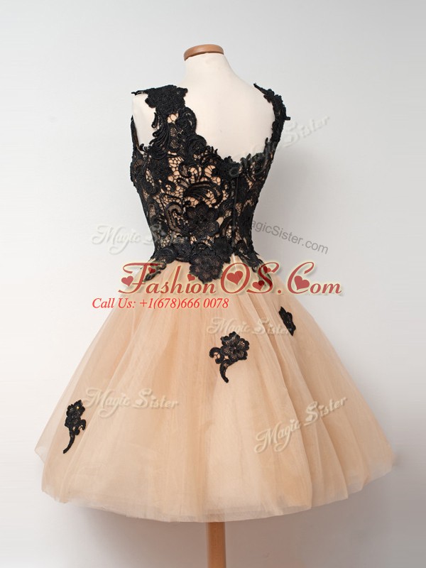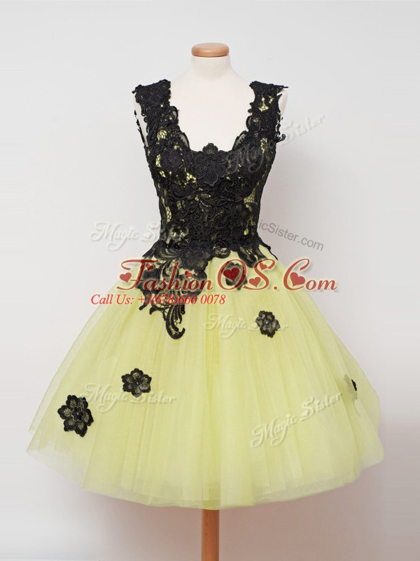 Custom Made Knee Length Zipper Damas Dress Yellow for Prom and Party and Wedding Party with Lace
