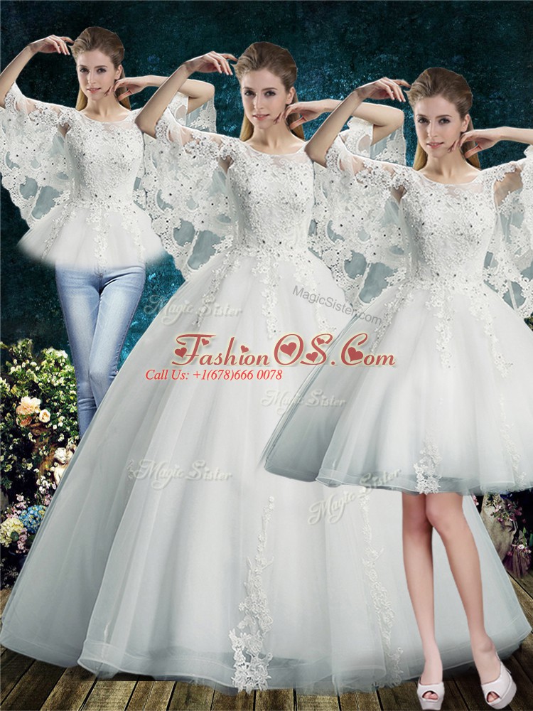 Custom Made Lace Wedding Dress White Lace Up Half Sleeves Floor Length