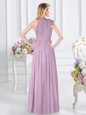 Silhouette: Empire Neckline: high-neck Sleeve Length: sleeveless Hemline/Train: floor length Back Detail: zipper Embellishment: ruching Fabric: chiffon Shown Color: lavender(Color & Style representation may vary by monitor.) Occasion: prom,party,wedding party Season: spring,summer,fall,winter Fully Lined: Yes Built-In Bra: Yes