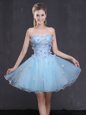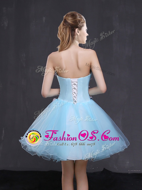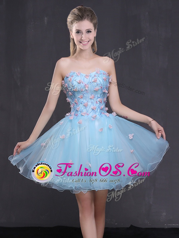 Custom Made Light Blue Lace Up Appliques Sleeveless Mini Length