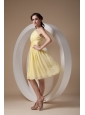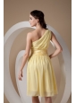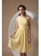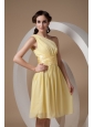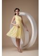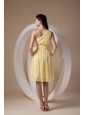 Custom Made Light Yellow Cocktail Dress Column / Sheath One Shoulder Chiffon Ruch Knee-length