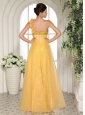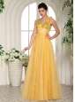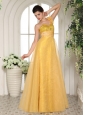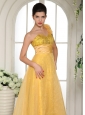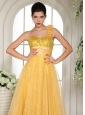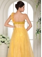 Home >  Special Occasion Dresses >  Celebrity Dresses > Custom Made Light Yellow One Shoulder Beading and Ruch Prom Dress With Strapless