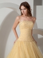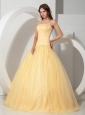Home >  Quinceanera Dresses >  Pretty Quinceanera Dresses > Custom Made Light Yellow Quinceanera Dress Strapless Beading