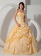 Custom Made Light Yellow Quinceanera Dress Taffeta Beading