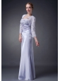 Custom Made Lilac Column Straps Mother Of The Bride Dress Elastic Woven Satin Appliques Floor-length