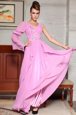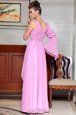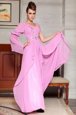 Custom Made Long Sleeves Side Zipper Ankle Length Beading and Ruching and Pattern Prom Party Dress