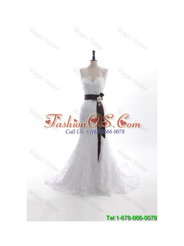 Custom Made Mermaid Halter Top Wedding Dresses with Beading