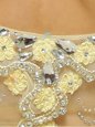 Home >  Prom Dresses >  Popular Prom Dresses > Custom Made Mermaid Light Yellow Side Zipper Dress for Prom Beading and Hand Made Flower Sleeveless With Brush Train
