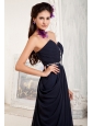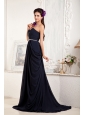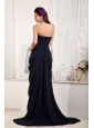 Custom Made Navy Blue Empire Evening Dress Sweetheart Chiffon Beading Brush Train