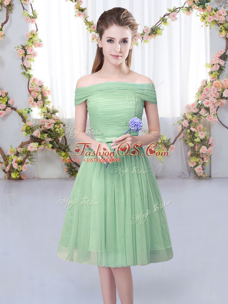 Custom Made Off The Shoulder Short Sleeves Lace Up Quinceanera Dama Dress Green Tulle