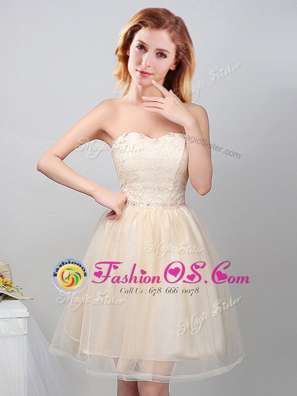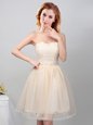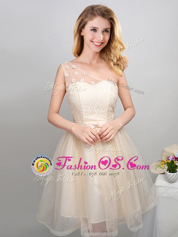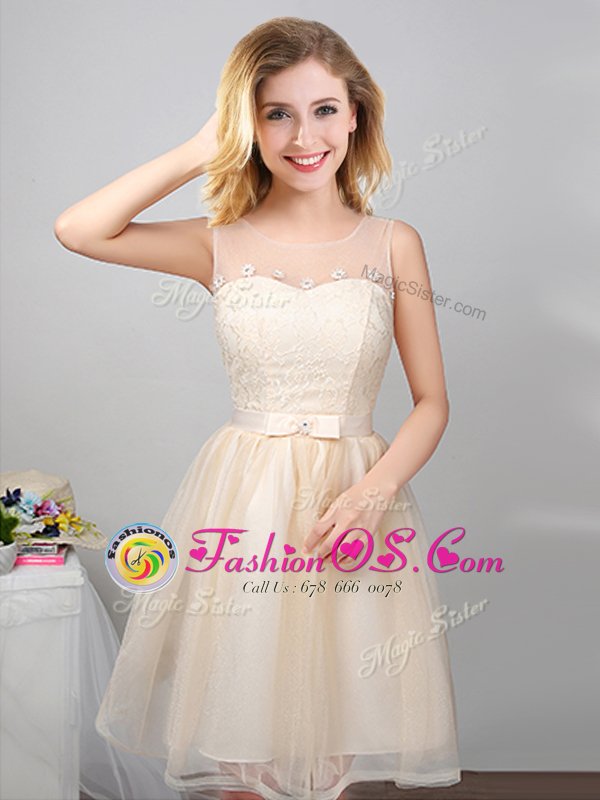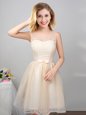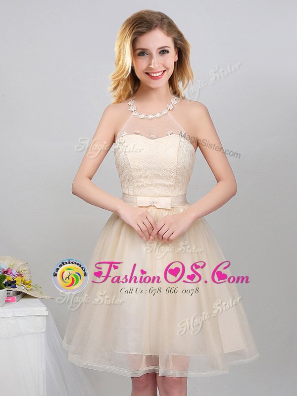 Custom Made Off The Shoulder Sleeveless Vestidos de Damas Mini Length Lace and Appliques and Belt Champagne Tulle