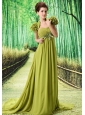 Home >  Prom Dresses >  Modest Prom Dresses > Custom Made Olive Green 2013 Prom Dress Hand Made Flower and Ruch In Graduation