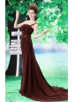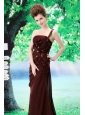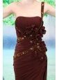 Stylish and fabulous! This gown features a one shoulder neckline and an empire skirt. The sheathy bodice is featured with pleats and beaded-line cosses over the bodice. The stunning beads abd the exquisite hand made flowers do really catching the appreciated eyes. The court train add the elegance. Choosing the dress, you are the queen of the party.