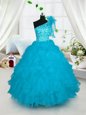 Custom Made One Shoulder Sleeveless Embroidery and Ruffles Lace Up Little Girls Pageant Gowns