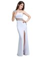 Home >  Prom Dresses >  Unique Prom Dresses > Custom Made One Shoulder Sleeveless Floor Length Beading Side Zipper with White
