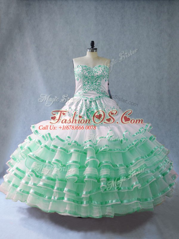Custom Made Organza Sweetheart Sleeveless Lace Up Embroidery and Ruffled Layers Vestidos de Quinceanera in Apple Green