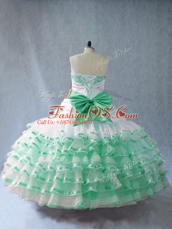 Home >  Quinceanera Dresses >  Fast Delivery Quinceanera Dresses > Custom Made Organza Sweetheart Sleeveless Lace Up Embroidery and Ruffled Layers Vestidos de Quinceanera in Apple Green