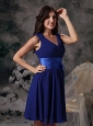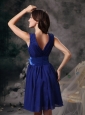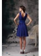 Custom Made Peacock Blue Empire Cocktail Dress V-neck Chiffon Ruch Mini-length