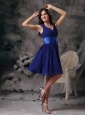 Home >  Special Occasion Dresses >  Cocktail Dresses > Custom Made Peacock Blue Empire Cocktail Dress V-neck Chiffon Ruch Mini-length