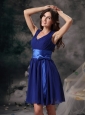 Looking for a fabulous dress for your 2013 homecoming or prom? This beautiful short V-neck dress has a demure knee length. A homecoming dress that features vertical shirring overlaying the V-neck empire bodice and a flared a-line knee length skirt. Available in many colors this V-neck Mini-length dress for homecoming will have all eyes on you.