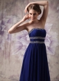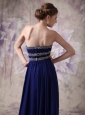 Custom Made Peacock Blue Empire Strapless Evening Dress Chiffon Beading Floor-length