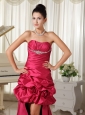 Custom Made Perfect Taffeat High-low Prom Dress Ruched and Beading Bodice