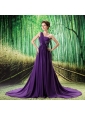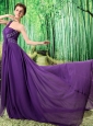 Custom Made Purple One Shoulder Ruched Bodice Prom Dress Beaded Decorate Bust In Formal Evening